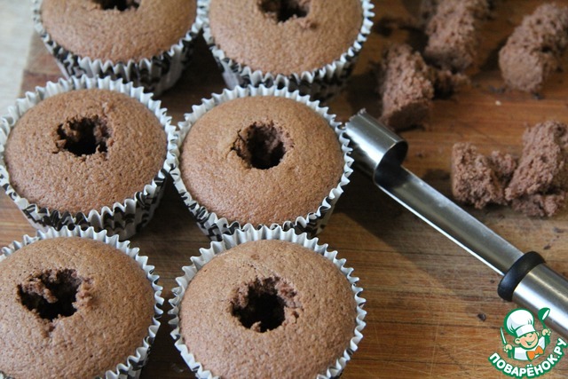 У готовых кексов вытащить серединку.