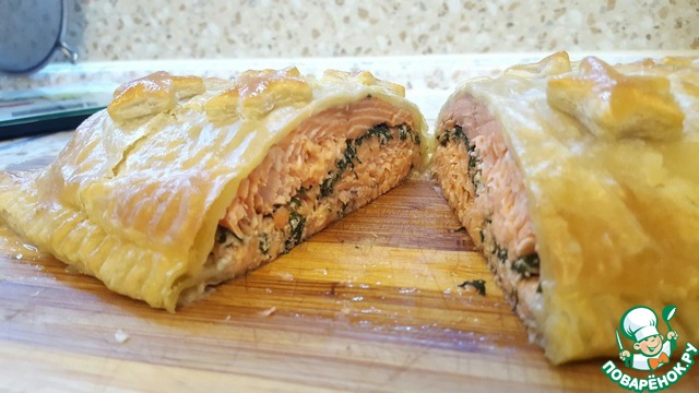 Простой в исполнении и вкусный пирог с рыбой. Тонкое тесто и большое количество сочной рыбы. Можно приготовить если идете в гости на праздник. Этот пирог большое поле для творчества. Можно вырезать любые фигурки из слоеного теста и украсить ими пирог.