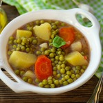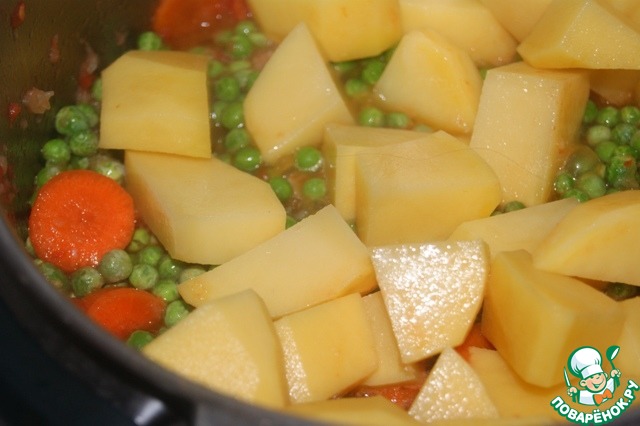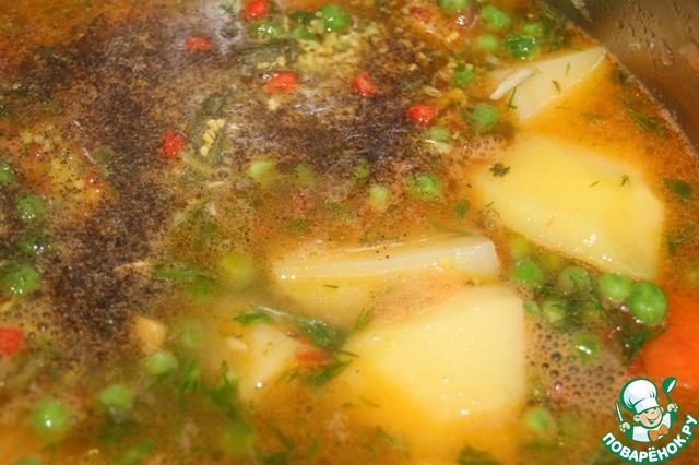 Все перемешать, залить бульоном, посолить, поперчить и добавить мяту.