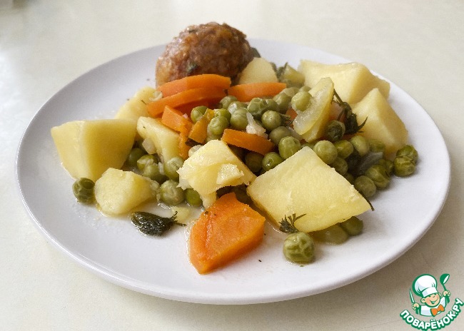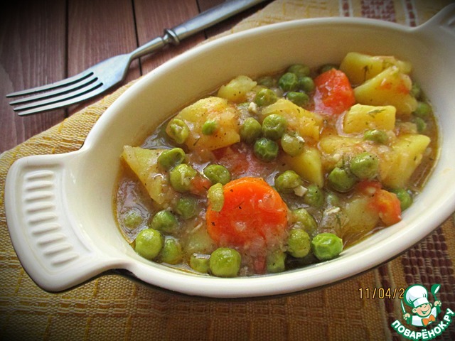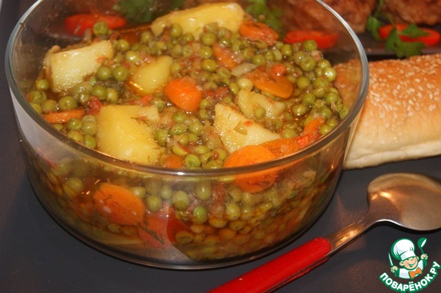 Аракас, в переводе с греческого - зеленый горошек. Приготовленное по классическому рецепту, это блюдо может быть гарниром к мясу, птице, рыбе (мне очень нравится с пряной килькой). Вполне может быть самостоятельным блюдом, которое прекрасно можно готовить в пост. Сегодня Аракас будет парой Биточкам из фарша, сытно, по-домашнему вкусно и ароматно!