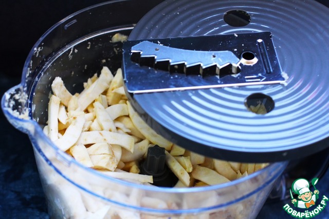 Корневой сельдерей очистить, нарезать кусочками