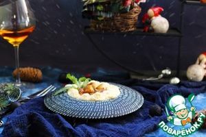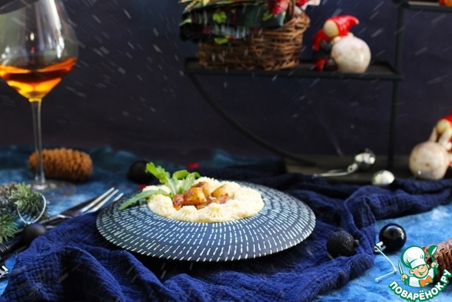В блюдо выложить пюре, сверху - гребешки. Можно сбрызнуть бальзамико сверху