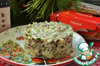 Собрать салат. Для сборки я использовала разъемную форму для кулича диаметром 10 см.