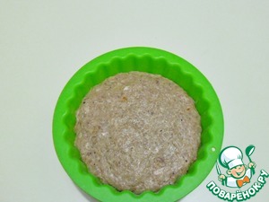 Выкладываю его в форму для запекания, которую слегка смазала маслом и посыпала дно и бока панировочными сухарями, совсем немного.