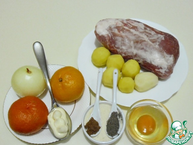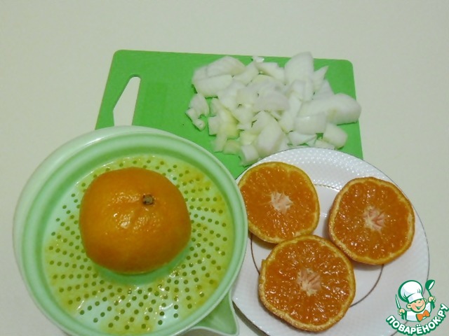 - Мандарин (сок из двух в мясо + 1 после выпечки) — 3 шт