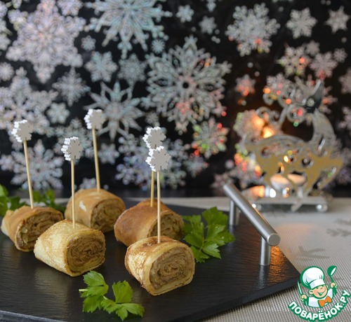 Рецепт «Закусочные блинные рулетики с паштетом»: