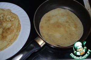 Для этого рецепта подойдёт любой, любимый вами, рецепт несладких блинчиков.