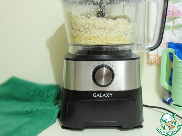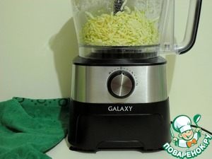 С помощью кухонного комбайна (насадка для шинковки) натерла сыр и яйца.
