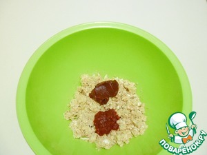 В одну добавить томатную пасту и измельченный болгарский перец.