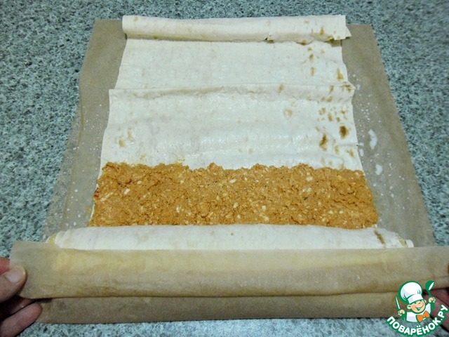 2 часть - первую часть прокрутить несколько оборотов просто в лаваше.