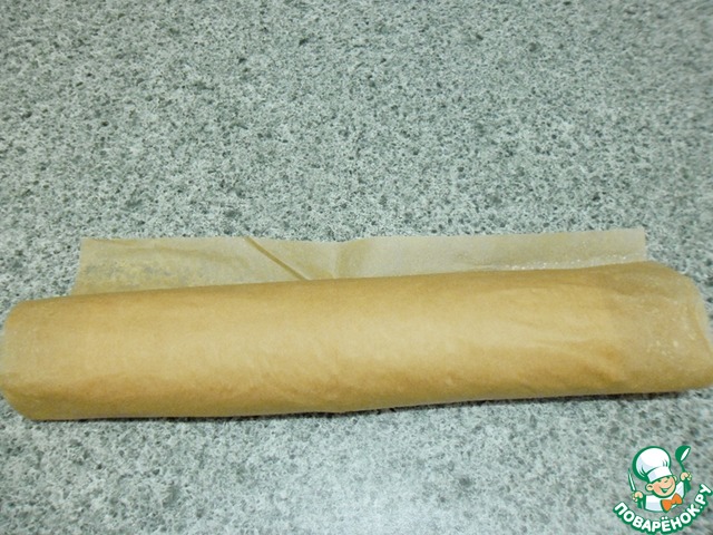 В завершении - готовый рулет прокатайте пару раз в пергаменте, -