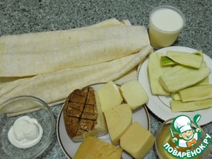 Для начинки я взяла сыр разных видов. Здесь есть моцарелла, т. к. она хорошо плавится и соединит всю начинку.