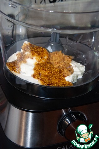 Соединить сметану и горчицу. Можно воспользоваться кухонным комбайном GALAXY GL2300