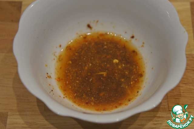 Растолочь перчики чили и смешать с лимонным соком. Посолить, дать заправке постоять по крайней мере час.