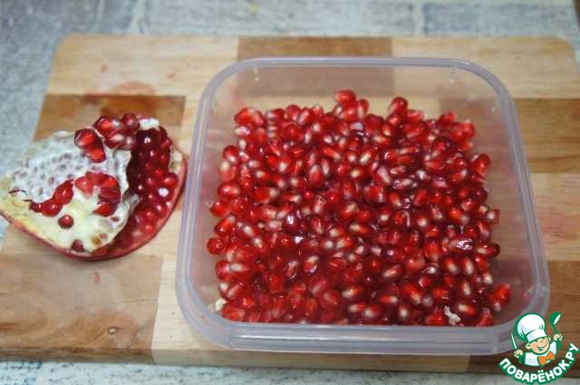 Гранат почистить, разобрать на зернышки. Нам потребуется 1,5 стакана зернышек.