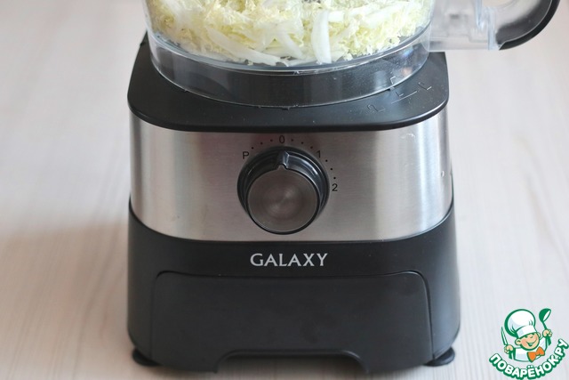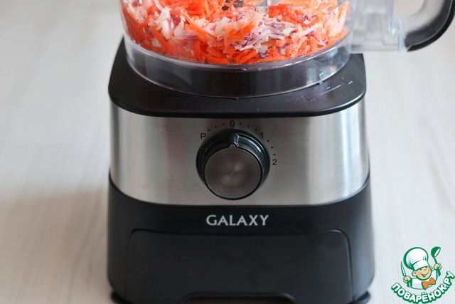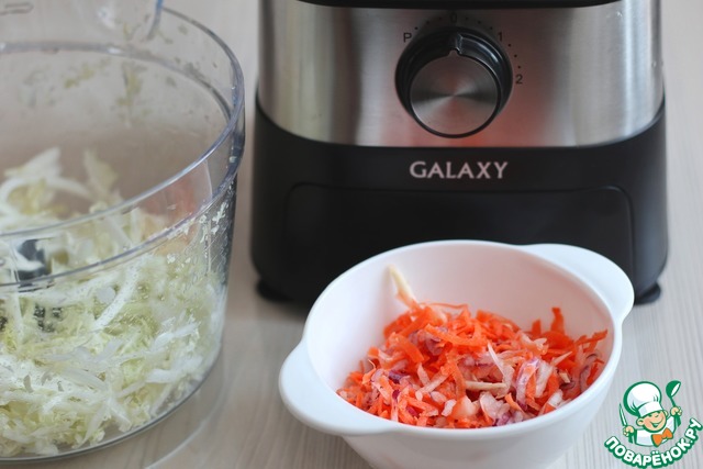 Овощи (морковь, лук, пекинская капуста) были нашинкованы при помощи кухонного комбайна GALAXY GL2300