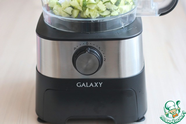 Огурец (1 шт.) нашинковать кубиками при помощи кухонного комбайна GALAXY GL2300