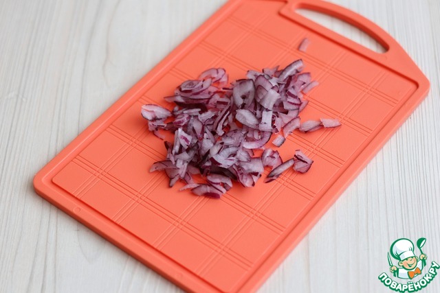 Репчатый лук (1 шт.) нашинковать мелкими кубиками.