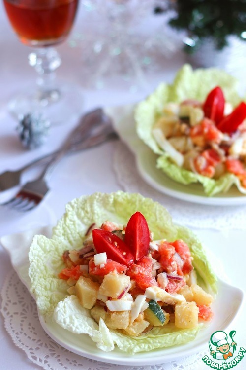 Салат для любителей блюд из рыбы. Простой и вкусный, он несомненно украсит ваш Новогодний стол.