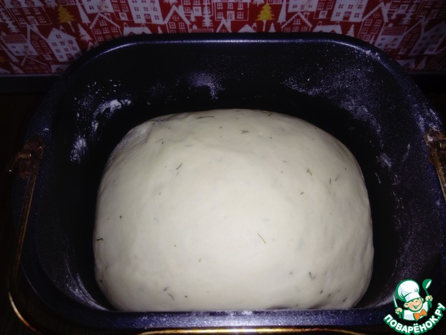1. Замешиваем дрожжевое тесто. (я замешиваю в хлебопечке) Смешиваем в миске все сухие ингредиенты муку, сушёные травы, чеснок, соль, сахар, черный молотый перец, дрожжи. В емкость от хлебопечке добавляем воду, растительное масло, а затем сухие ингредиенты и замешиваем тесто. Оставляем тесто для поднятия на 1 час в теплом месте. Муки может уйти чуть больше или меньше в зависимости от сорта муки.