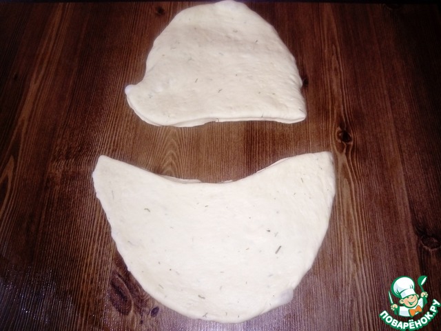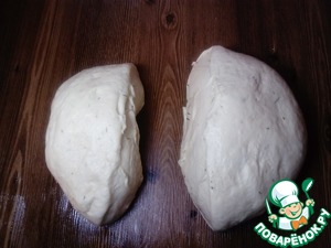 2. Тесто выкладываем на смазанную маслом поверхность, делим его на 2 неравные части (примерно 2:3).