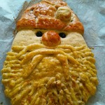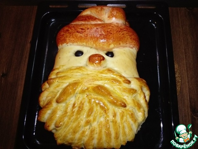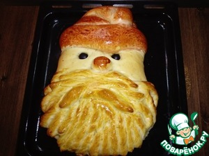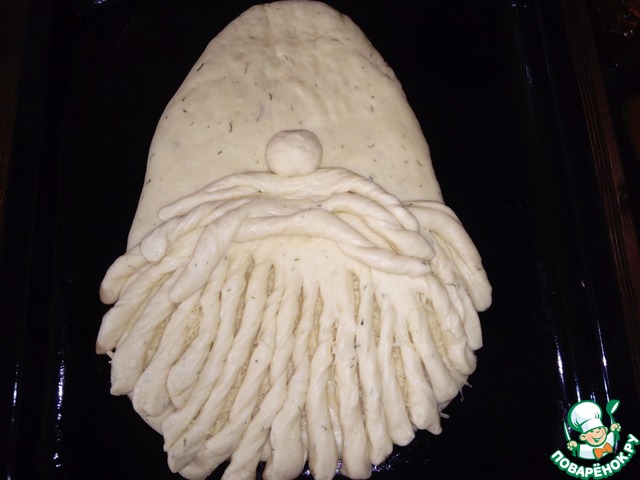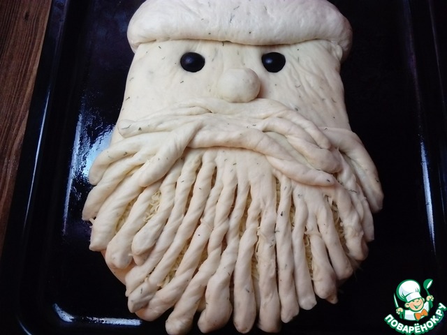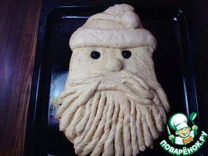 14. Разогреваем духовку до 180 гр. и выпекаем дедушку 40 минут. Но каждый должен ориентироваться на свой духовой шкаф, время выпекания может меняться. Как только дед мороз зарумянится, а на кухне будет невероятный запах хлеба, значит наш дедушка готов.