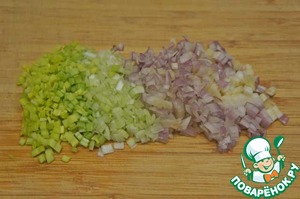 Лук очень мелко нарезать.