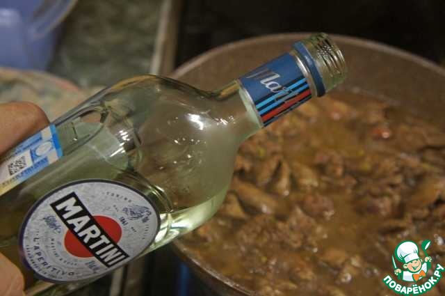 Увеличить огонь. Добавить печень, соль и специи. Тушить, помешивая, пока печень не поменяет цвет.
