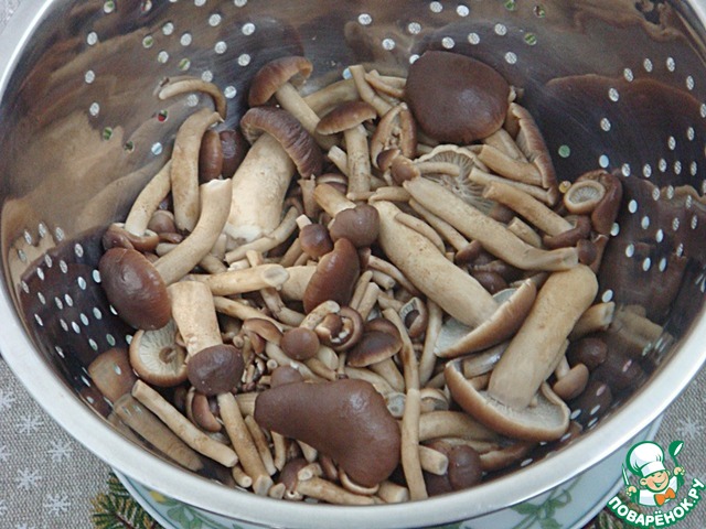 У меня были вот такие свежие красавцы. Обычно муж приносит грибы из леса. На сей раз не смог пройти мимо них в магазине. Уж больно хороши. -