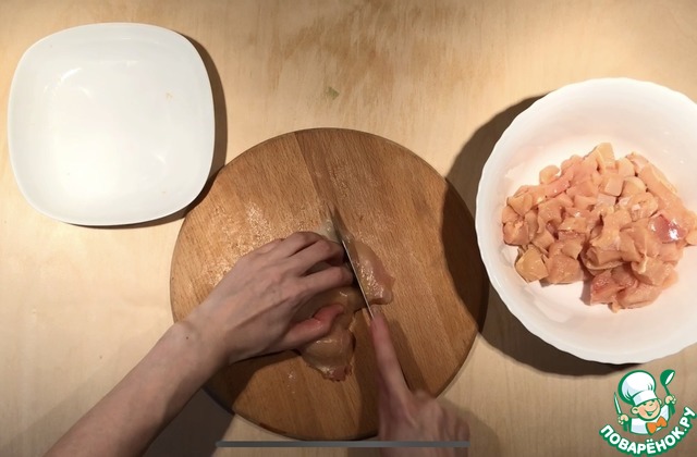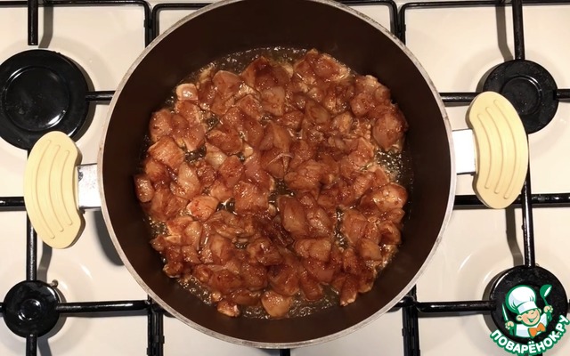 Когда масло разогреется, доставаем из холодильника маринованное филе и начинаем обжаривать