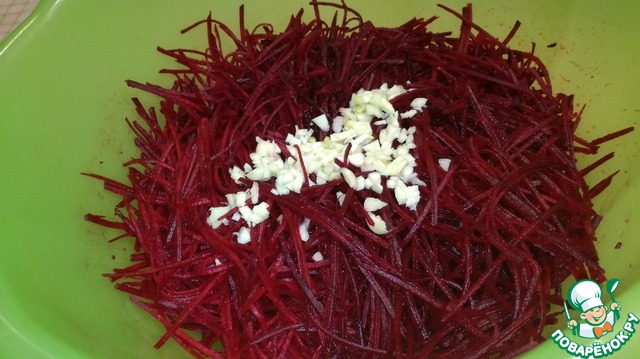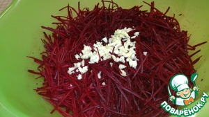 Чеснок почистить и мелко порезать. Добавить к свекле.