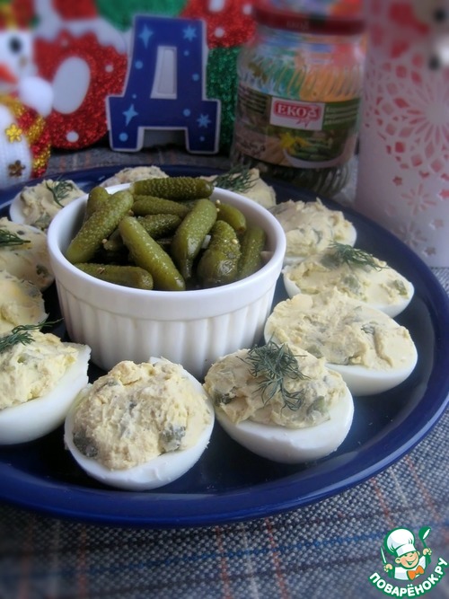Рецепт «Яйца с сырно-огуречной начинкой»: