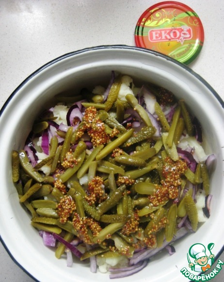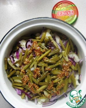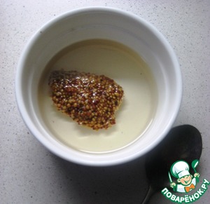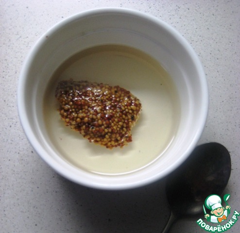 Для заправки смешать растительное масло и горчицу с зернами. Перемешать.