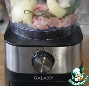 Я использовала кухонный комбайн GALAXY GL2300. Готовим фарш.