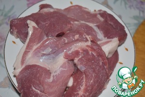 Нарезать мясо на порционный куски толщиной 1,5-2 см. У меня получилось 3 стейка.