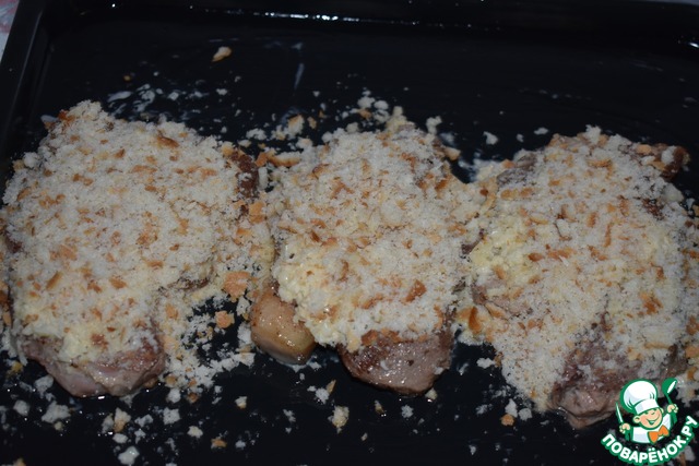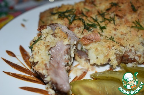 [+5]Мясо шикарное, сочное, вкуснейшее. Классная идея с крошкой, потрясающая хрустящая корочка!