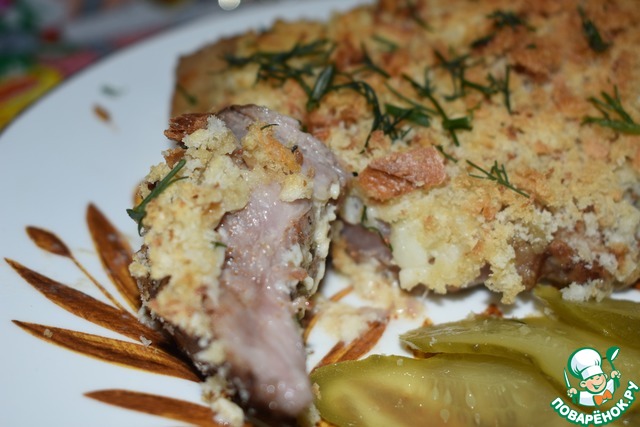 Хочу предложить для праздничного стола незамысловатый рецепт с замечательным результатом. Сочное мясо в хрустящей хлебной крошке. Готовить очень просто, продукты самые доступные. Заходите на огонек.