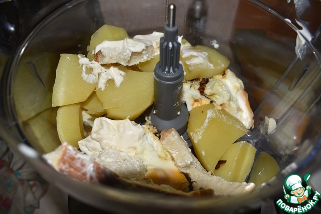 Яичницу, батон, картофель нужно превратить в однородный фарш. Мне в этом помог мой новый помощник на кухне кухонный комбайн GALAXY GL2300. Справился за считанные секунды.
