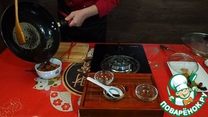 В конце кладем в вок леденцовый сахар, накрываем крышкой и тушим минут двадцать.