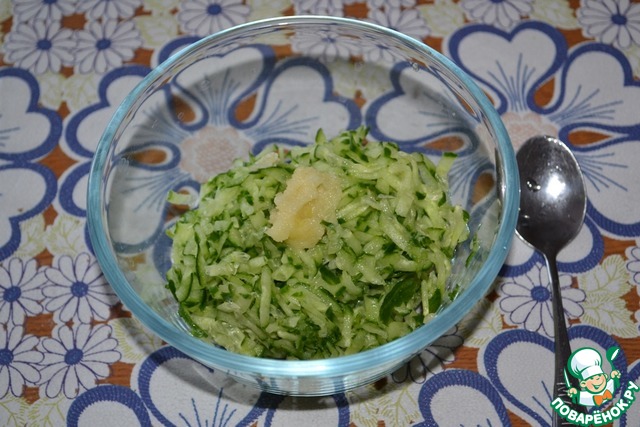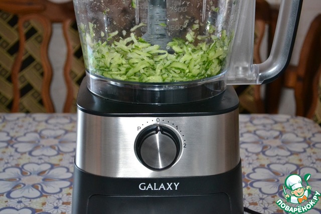 Свежий огурец натереть на крупной тёрке. С этой задачей за пару секунд справился кухонный комбайн GALAXY GL2300.