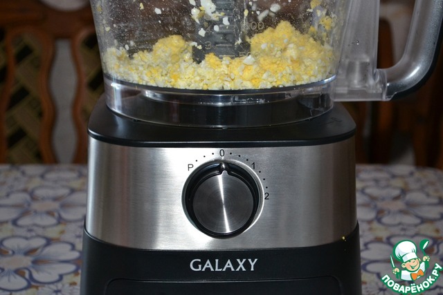 Яйца натереть на крупной тёрке. И с этой задачей легко справился кухонный комбайн GALAXY GL2300.