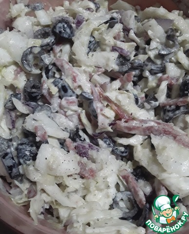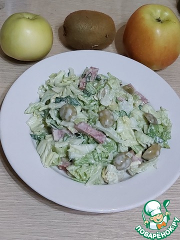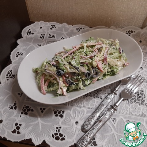 Попробуйте приготовить быстрый и питательный салат из пекинской капусты по нашему рецепту! Простота в приготовлении и отличные ингредиенты! Хрустящая капуста, колбаски, оливки и нежный майонез!