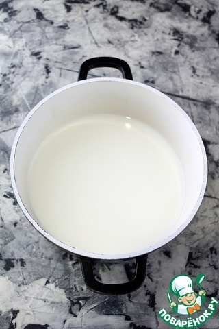 Кастрюлю ополоснуть водой и влить молоко.