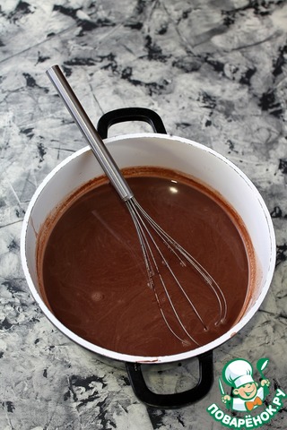 Постоянно помешивая венчиком влить смесь какао.