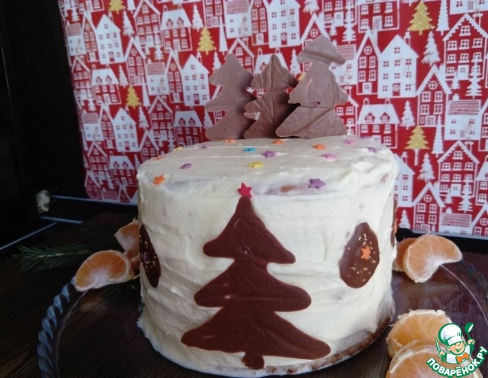 1. Кроя и верхушку у бисквита обрезаем (если не хотите срезать можете этого не делать, но так торт получится более ровным). Первый корж выкладываем на блюдо и промазываем кремом, а затем все остальные коржи также выкладываем и промазываем кремом. Покрываем торт кремом и украшаем по желанию.