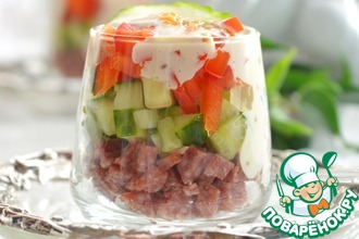 - Колбаса (варено-копчёная или любая мясная продукция) — 100 г