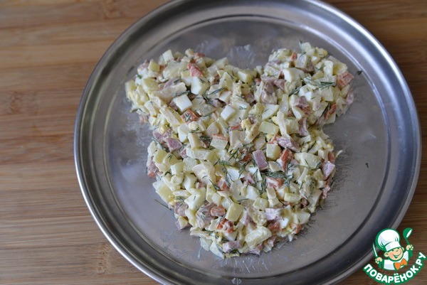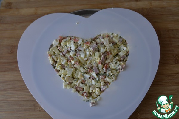 При приготовлении салата подразумевается, что все овощи и яйца заранее сварены.
