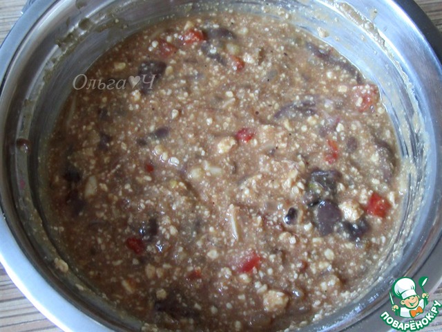 Сыр добавить к основной массе, затем остуженные овощи, манку, муку, соль, смесь перцев, измельченный чеснок.
