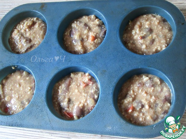 Разогреть духовку до 180*С. Формочки для кексов смазать маслом, разложить массу толщиной в 1-1,5 см. ***Получается 12-15 штук в зависимости от диаметра формочек.