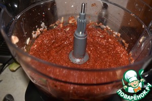 С приготовлением маринада мне очень помог кухонный комбайн GALAXY GL2300. Справился за несколько секунд. Положить в чашу очищенный репчатый лук, нарезанный на сегменты, очищенный чеснок, нарезанные на сегменты яблоки, соевый соус, томатную пасту, мед, соль, специи и измельчить. Получается очень яркий кисло-сладкий остренький маринад.